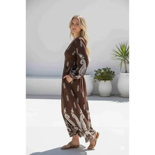 Valencia Paisley Chocolate Maxi Dress